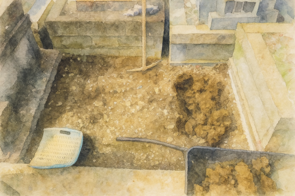 安全第一で重機と手作業を組み合わせ、周辺に配慮しながら撤去。更地に戻して管理者へ返還可能な状態に。